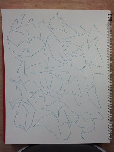 ●ここ数日で、色鉛筆で描いたドローイング。 ●写真で見ると色があまりよく分からないかもしれない。でも、実物を見ても「色」自体がそれほど際立つわけではない(どれも単色で色の差異はないわけだし)。色それ自身よりも、線が色を持つことで、それぞれの色に…